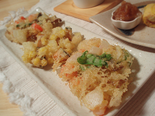 ・かきあげ(えびとたまねぎ、かぼちゃとコーン)