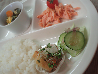 ・しらすと油揚げの和え物(焼いた油揚げとしらす、大根おろし、スプラウト)