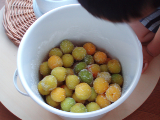 少し水につけてから、よく水分をふき取って竹串でへたを