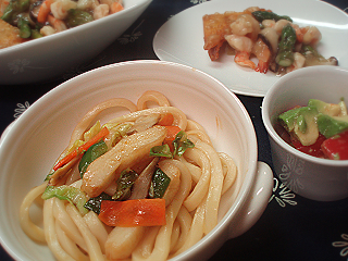 ・焼きうどん(ピーマン、キャベツ、にんじん、笹かまぼこ)