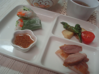 ・生春巻き(春雨、きゅうり、かに風味かまぼこ、ベビーリーフ、