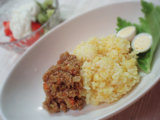 ・キーマカレー(合いびき肉、玉ねぎ、セロリ、にんじん、にんにく、トマト、