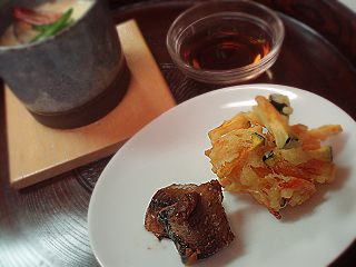 ・茶碗蒸し(鶏肉、えび、たまご、干ししいたけ、銀杏、きぬさや)