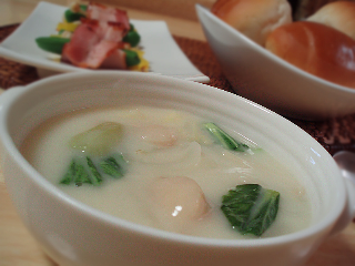 ・ほたてと白菜のシチュー(たまねぎ、白菜、青梗菜、えのきだけ)