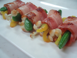 ・野菜のベーコン巻き(パプリカ、茶色いえのきだけ、スナップえんどう)