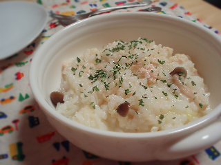 ・鶏ときのこのリゾット(鶏ひき肉、ぶなしめじ、白まいたけ、たまねぎ、