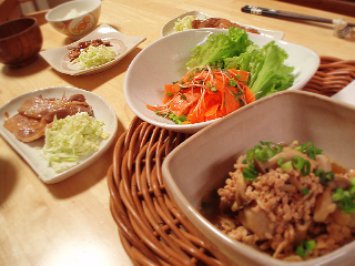 ・豚肉のしょうが焼き(付け合せにキャベツ)