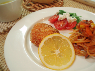 ・さばのカレームニエル(プチトマト、プチヴェール添え)