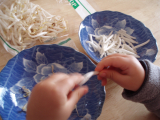 もやしのひげ根とりです。