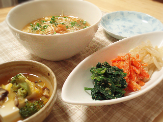 ・三色ナムル風(ほうれんそう、にんじん、もやし、ごま)