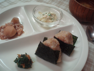 小さいおにぎりを2つ作ったうち、1つは食べてましたが。