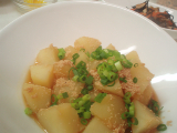 細かくたたいておき、煮汁をとって煮て片栗粉でとろみをつけ、里芋の